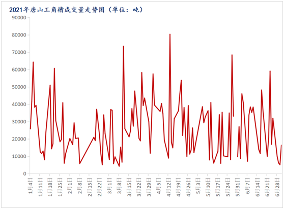 圖4:唐山工角槽品種日度成交量走勢圖 數(shù)據(jù)來源:鋼聯(lián)數(shù)據(jù)